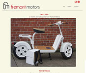 Fremont MotorsFremont Motors was a Seattle-based company that has designed and prototyped an electric scooter, Fido. Site design and construction. Implemented all layout, graphics and code. Design collaboration with Kevin Hanes. -